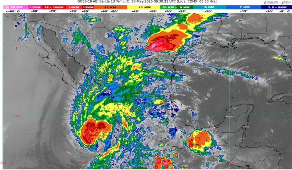 🔸 Causará lluvias y vientos fuertes, así como trombas marinas y oleaje de varios metros.