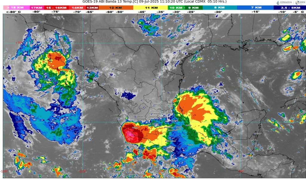🔸En combinación con otros fenómenos, propiciará lluvias en estados del norte, noreste, oriente, centro, occidente y sur de la República Mexicana.