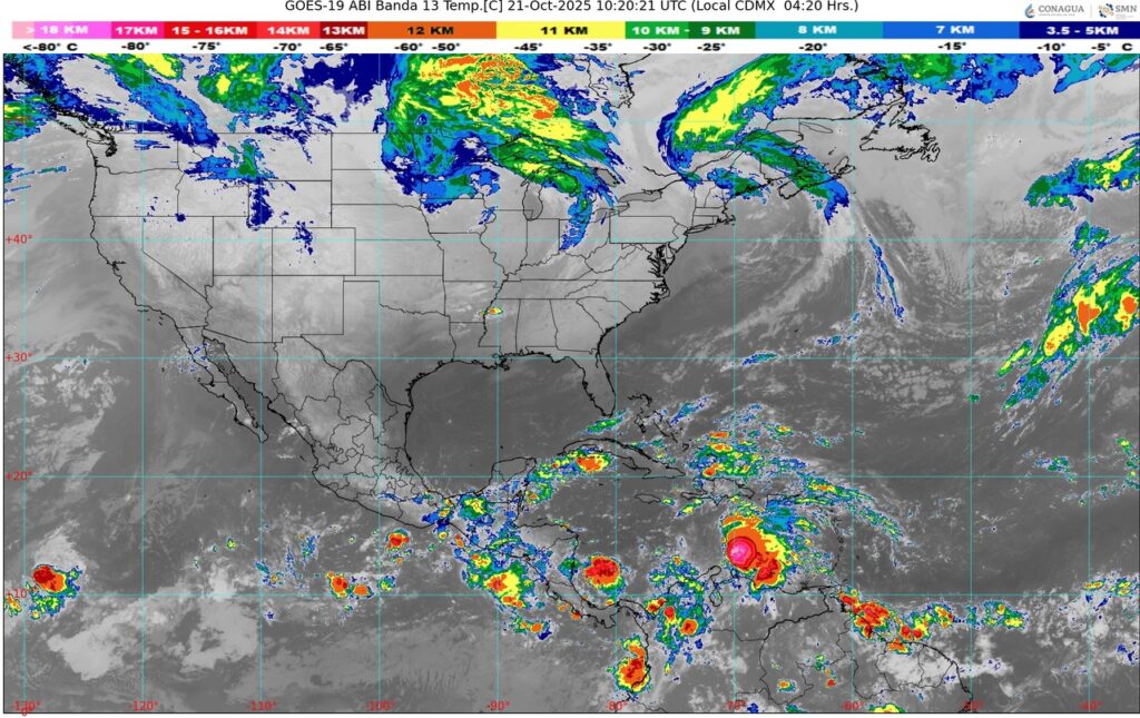 También, una circulación anticiclónica en niveles medios de la atmósfera sobre la Mesa del Norte, ocasionará una baja probabilidad de lluvias en dicha región, además de la Mesa Central y el noreste del país.