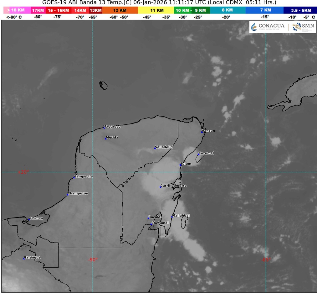 A su vez, canales de baja presión y el ingreso de humedad del océano Pacífico, golfo de México y mar Caribe, ocasionarán lluvias y chubascos con posibles descargas eléctricas en el sureste mexicano, incluida la península de Yucatán.